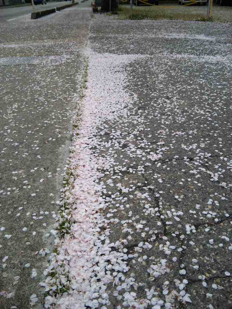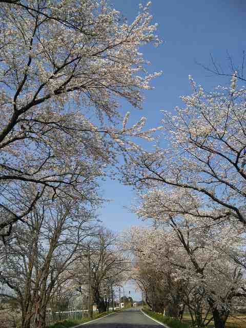 その枝々が道路向かいの桜へお互いに手を伸ばし、簡単なトンネルになっていた。