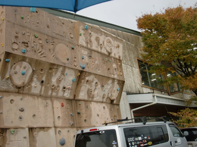 外壁にはボルダリングの壁。